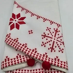 Ashland Christmas Holiday 48" Tree Skirt White Canvas Red Embroidered NWT
