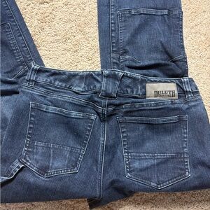 Indigo boot cut mid rise jeans with a classic fit. Durable and stylish for everyday wear.