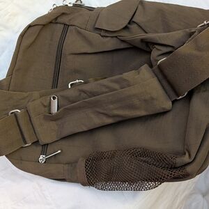 Stylish and functional brown crossbody bag by Baggallini. Perfect for everyday use with multiple compartments for organization. bag was used, but there are still lots of adventures left.