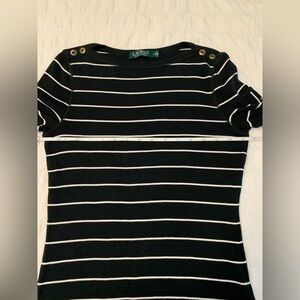 Lauren- Ralph Lauren Black and White Striped 3/4 Sleeve Top
