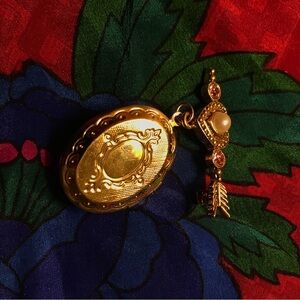 Vintage Cupid Gold Locket with Cherub Design Charm