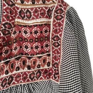 Veronica Beard Rosie Silk Gingham Paisley Blouse black size 6 boho