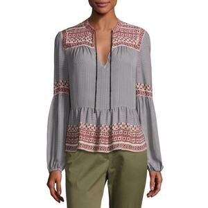 Veronica Beard Rosie Silk Gingham Paisley Blouse black size 6 boho in excellent condition. Measurements laying flat chest 18 inches across and length 23 1/2 inches long