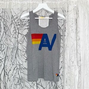 Aviator Nation HEATHERED light gray navy blue AV logo tank top