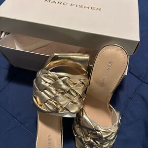 Marc Fisher • Metallic Gold Heeled Mules • 7 M