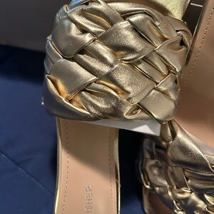 • Chic metallic gold mules with a woven design. Perfect for adding glamour to any outfit • NWT • Excellent Condition • Party/ Fun/Sexy •