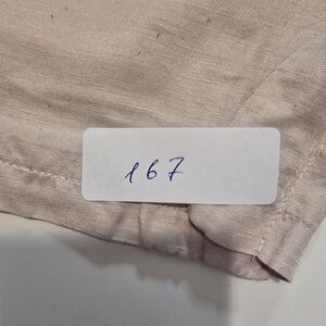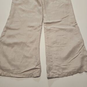 Off-white crepe (35% Lyocell, 33% Rayon, 32% Linen). Pants. Front zipper fly with button closure.
