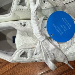 See pictures for very light wear on sole and discolored mark near top of laces