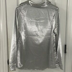Silver Satin Women's Blouse with Draped Neckline NWT