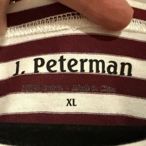 J. Peterman Maroon/Cream Striped Long Sleeve Tee Shirt Size XL Classic Fall