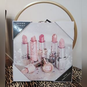 Enhance your space with the District Pink Lipstick Wall Art. This hand-embellished piece adds a touch of elegance and style to any room.