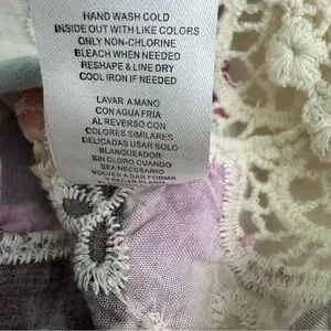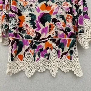 Democracy Three Quarter Sleeve V-Notch Neck Peplum Crochet Printed Woven Top M