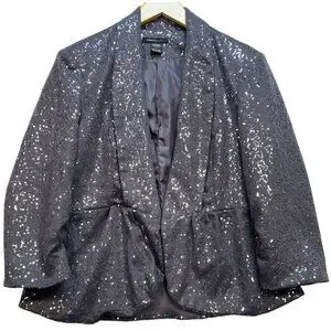 Robert Louise Women's Open Front Cardigan Sequin Blazer Long Sleeve Size L Gray
