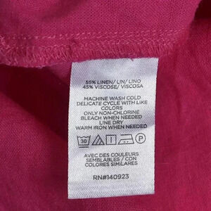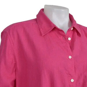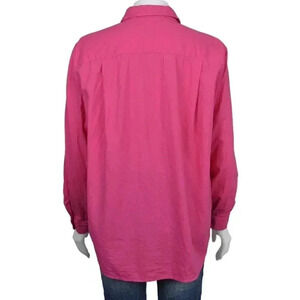 LOFT Linen Blend Button Down Blouse Barbiecore Long Sleeve Size Large