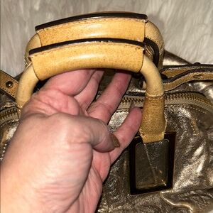 Chic Chloe satchel in metallic gold. Features sturdy handles and detachable strap. Stylish and versatile. And gently used condition no major callouts great bag price to sell.