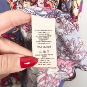 Beautiful multicolor floral tunic top by Free People! Purples, pinks, oranges, and whites. Long sleeves. Button cuff. V-neck. Oversized fit. Ruffle bottom. Great condition. Womens size small.