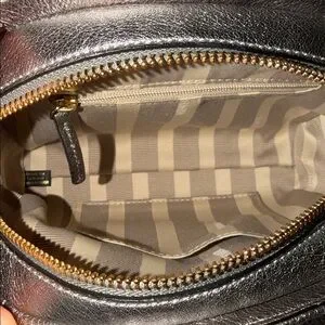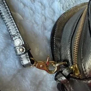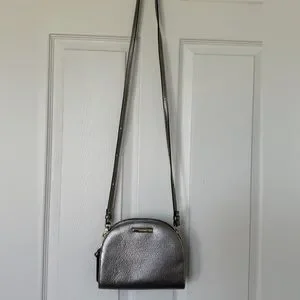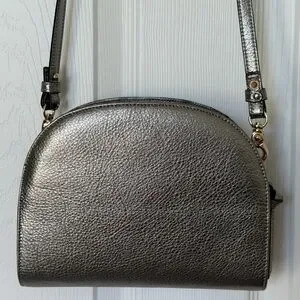 Brahmin describes the Leah as a “trendy half-moon shaped crossbody perfect for wearing on the go”, and the color as an “eye-catching metallic leather in shiny platinum anthracite, perfect for adding a playful hint of shimmer to every look”. This is perfect for evenings out, or special occasions when you want to carry a small lightweight bag.