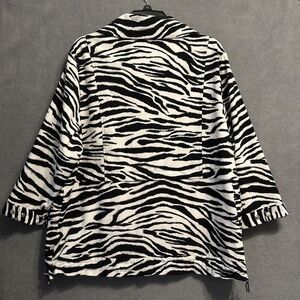 Chico's Zenergy Zebra Print Jacket Full Zip Collared Stretch Pockets Size 3 (XL) Black White Striped