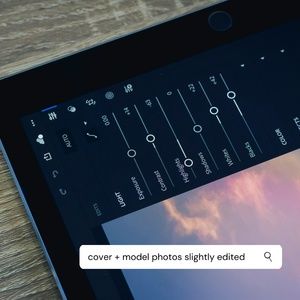 Photos are slightly edited in model photos but included unedited photos of garment when hung
