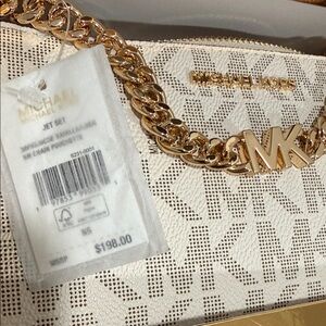 Michael Kors Jet Set Cream and Gold Clutch With Chain In Gift Box