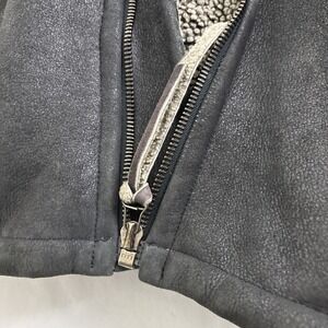 Gorgeous Searle leather and shearling lined coat. Coat is a men's size large in black. Coat was made in England. It has a small spot on one arm and natural wear to shearling but overall in great shape see pics for details.