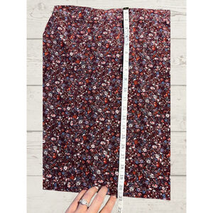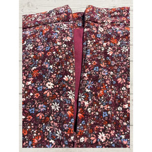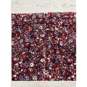This is a Women's Burgundy Floral Cord Knee Length Straight Skirt by Woolovers. Smart and soft, this cord skirt will become a fall and winter favorite. It has a back vent and concealed back zipper. There are added mock pockets for extra style points. Made from 98% cotton with a touch of elastane for added comfort. Item is in excellent used condition with no noticeable wear. Approximate measurements are in the photos. Super Cute!