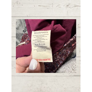 EUC Women's WoolOvers Burgundy Floral Cord Knee Length Straight Skirt Size 14