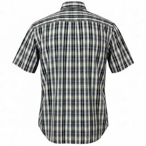 The product is a vintage Polo Ralph Lauren Classic Fit Short Sleeve Button Down Shirt in blue plaid, men's size XL. This shirt features a collared neckline, button-down style, and is made of lightweight, easy-care cotton fabric. It is suitable for various occasions such as travel, parties, casual wear, and business meetings. The shirt is accented with embroidered detailing, reflecting a classic, 90s preppy theme. With its chest size of 54 inches, this Polo Ralph Lauren shirt is a stylish and versatile addition to any man's wardrobe.