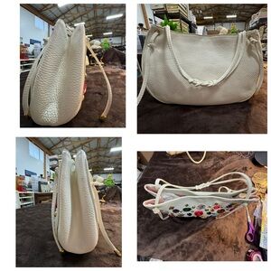 Stylish white handbag adorned with colorful gem embellishments. Perfect for adding a pop of color to any outfit. Knotted straps that can be lengthened by an additional 6 inches if you need longer straps. Calfskin Leather is super soft. Pink material inside is pristine. Again another bag from a collection. Very few made in this style. Comps are from 5900.00 to 8900.00. In person she is stunning. Will come in unbranded dust bag. Cold storage. See all pictures for all details