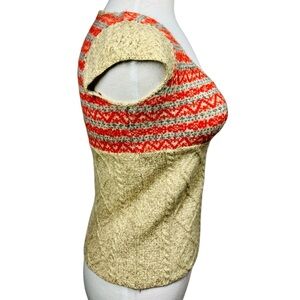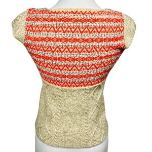 Free People Babydoll Orange Red and Cream Knit Cap Sleeve Sweater Top Size XS