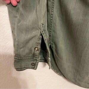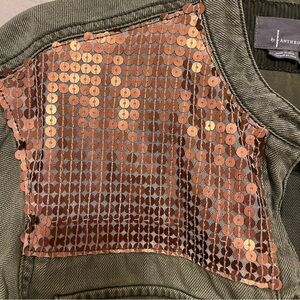 Anthropologie Olive Green and Bronze Sequin Button Down Shirt Size 8