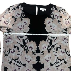 Calvin Klein Black, Cream, Pink Floral Blouse, sheer and lined, XL