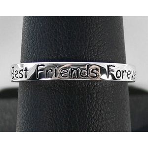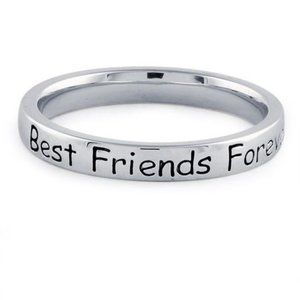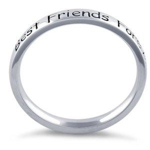 NWOT solid 925 Sterling Silver Ring. Show your best friend some love with this 2.7 (mm) 'Best Friends Forever' band ring. Its stamped 925 and has a Rhodium finish for greater shine and durability. If you don't see the size you want please contact me and I will see if I can order one for you, this ring comes in sizes 2-14, no half sizes. Comes from a smoke free home.
