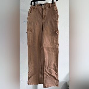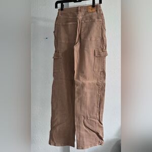 Beige high-rise pants with button detail. Ideal for everyday style.
