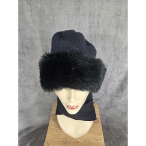 Turtle Fur Women Classic Warm Black Fur Fleece Hat Ear Muffs & Neck Warmer Scarf