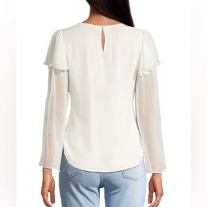 Layered with chiffon ruffles, Rebecca Taylor's charming blouse features mesh long sleeves with a short-sleeve overlay. This relaxed top evokes a luxurious design from its silk craftmanship.