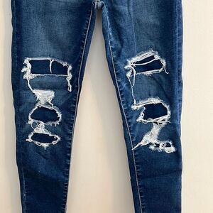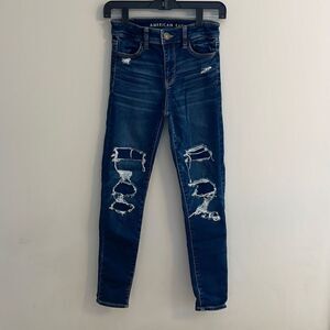 American Eagle Next Level Stretch Jeans Hi-Rise Jegging Dark Destroyed, 0 Short
