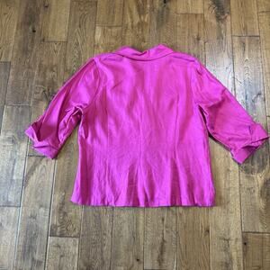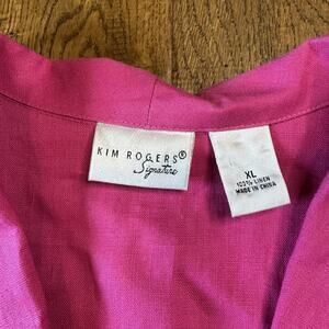 Kim Rogers Blouse 100% Linen Fucia Pink 3/4 Sleeve Button Up Shirt Womens Sz XL