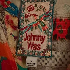 Johnny Was Multicolor Embroidered Patchwork Top