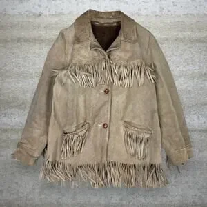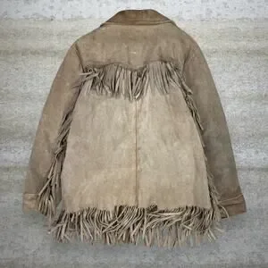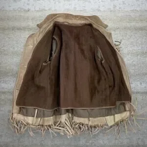 True Vintage Western Suede Leather Jacket Tan Faux Fur Lined Button Up Tassel 90s