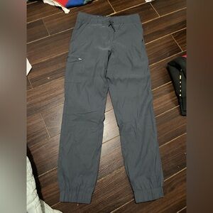Comfortable and stylish gray jogger pants perfect for casual wear. Features an elastic waistband and a sleek design.