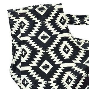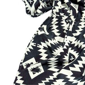 Pink Rose Aztec Boho Mini Dress Black White Elastic Waist Size L Southwest Artsy