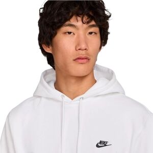 The Nike Club Pullover Hoodie Sweat Shirt in White and Black is a stylish and comfortable activewear piece for men. Made of soft fleece fabric, this hoodie features a drawstring closure, long sleeves, and a hood for added warmth and style. The solid color design and regular fit make it a versatile addition to any man's wardrobe, while the Nike branding adds a touch of sporty flair. Machine washable for easy care, this hoodie is perfect for everyday wear or casual outings.