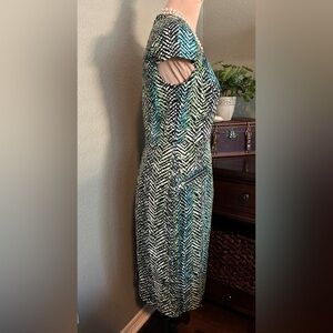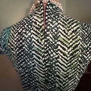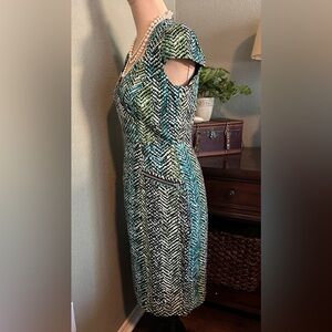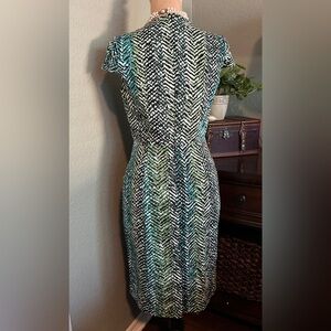JAX Cotton Sheath Dress Green Geometric Print Size 6