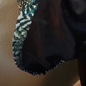 JAX sheath dress with an eye-catching green, teal & black geometric print. Tailored fit with cap sleeves and back zip. Fully lined and flattering for work or events.