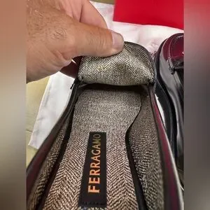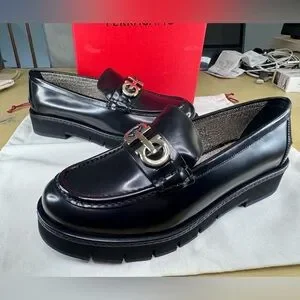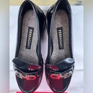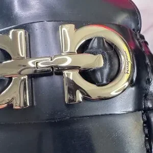 Elegant black loafers with subtle gold details. Classic Ferragamo style.