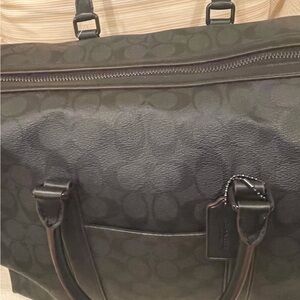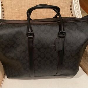 Stylish Coach duffel bag with signature pattern. Features dual handles and spacious interior. Ideal for travel or gym or work. Comes with a cross body strap. Brand new. Never used.