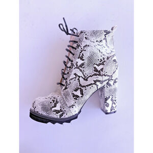 Chase + Chloe Women's Binx-1 Combat High Heel Ankle Boots Snakeskin Size 10