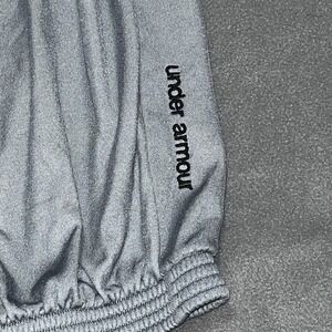 These Under Armour Gray Joggers in size large are perfect for athletic performance and activewear. Made from 100% polyester, they feature an elastic waistband with a drawstring closure for a comfortable fit. The solid gray color with the Under Armour logo adds a stylish touch, while the tapered leg style and cuffed hem give them a modern jogger look. Ideal for gym training and other athletic activities, these joggers are a great addition to any athleisure wardrobe.