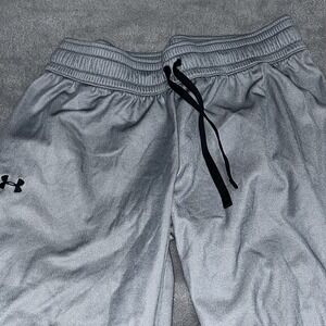 Under Armour Gray Joggers Large Athletic Performance Pants Black Logo